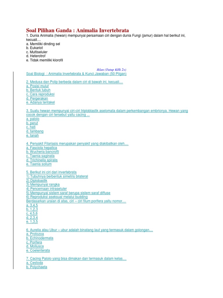 Soal Essay Invertebrata Dan Jawaban : Soal Essay Tentang Animalia Kelas X Serta Jawaban Related Soal Essay Tentang Animalia Kelas X Serta Jawaban Pdf Free Download - Beberapa invertebrata ini seperti spons yang menetap.
